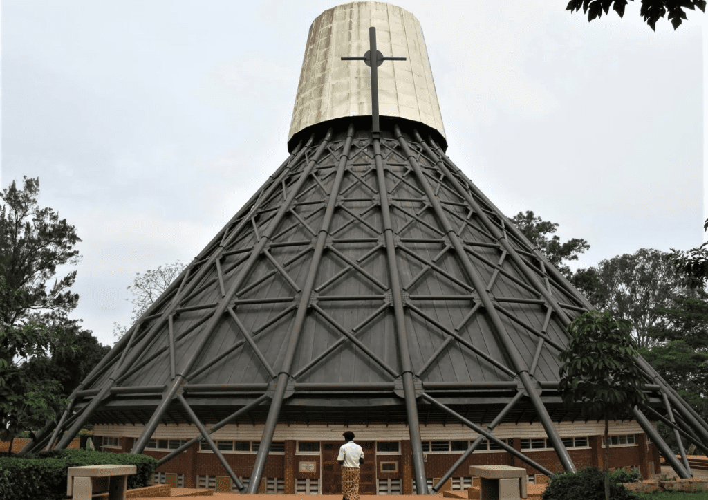 St. Charles Lwanga Basilica – A massive, modern church with a towering spire and mosaic murals depicting the martyrs’ story.